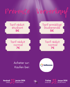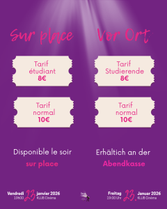 Les billets pour la soirée seront vendus le 23 janvier sur place au KLUB Cinema.